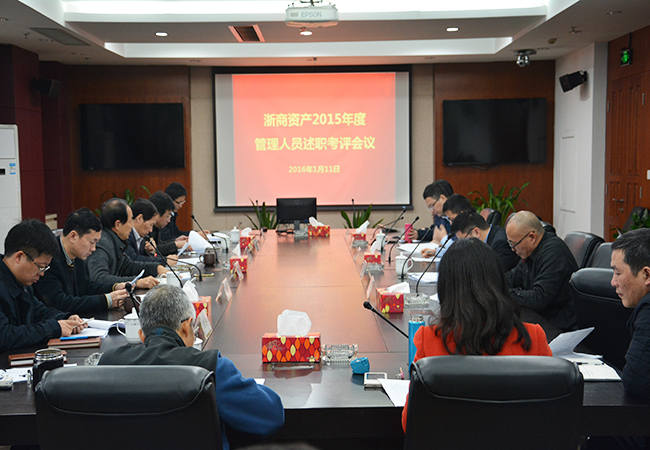 2016年1月11日,浙商資產(chǎn)管理有限公司在大會(huì)議室舉辦2015年度管理人員述職考評(píng)會(huì)議,公司本級(jí)及成員公司相關(guān)人員參加了此次考評(píng)。公司黨委書記、董事長(zhǎng)徐德良、公司領(lǐng)導(dǎo)班子成員參加會(huì)議,會(huì)議由黨委副書記葉寶山主持。