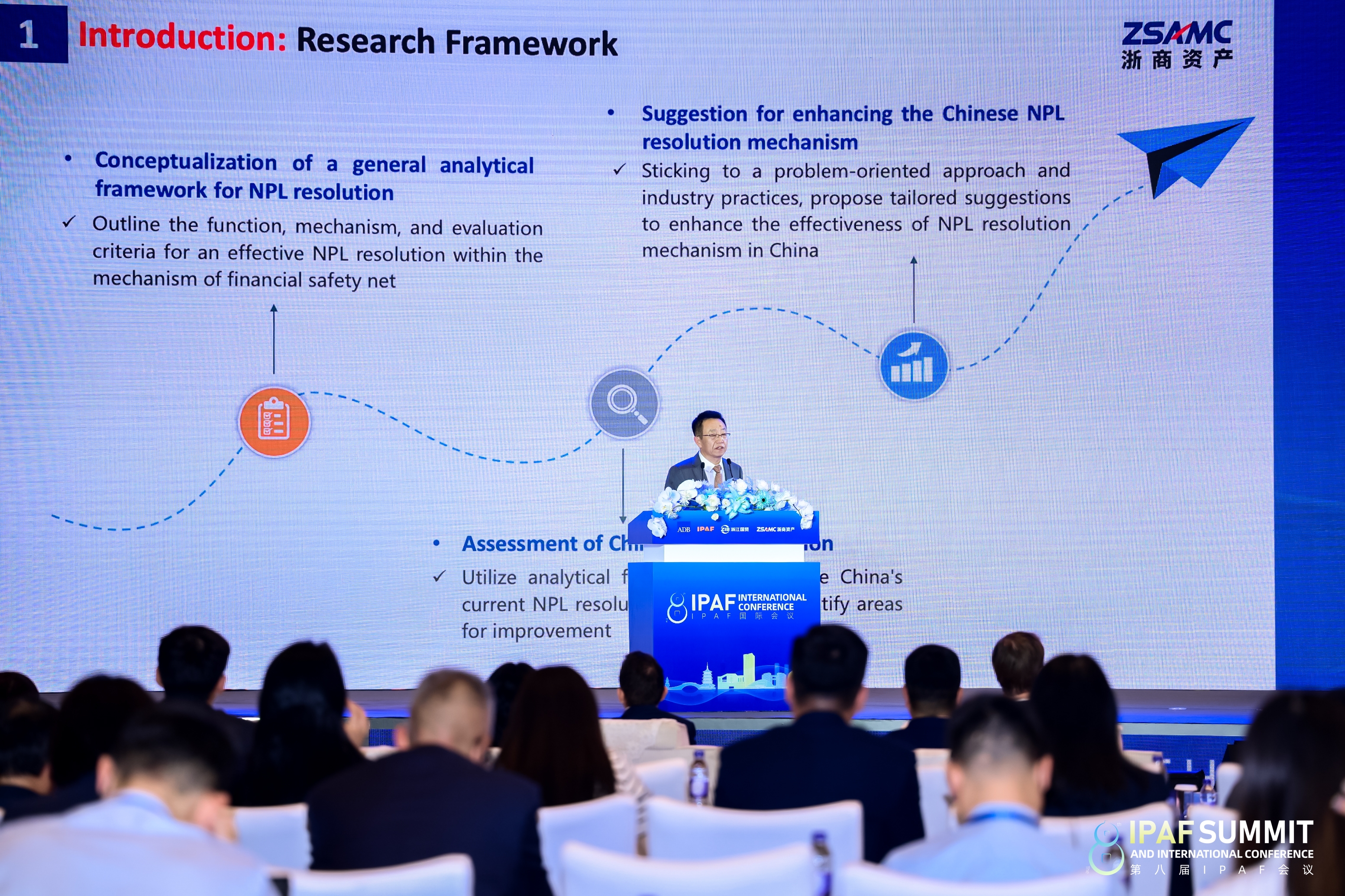 浙江省人民政府副省長張雁云出席會議并致開幕辭,亞洲開發(fā)銀行首席經(jīng)濟學家Albert Park先生,浙江省國貿(mào)集團黨委書記、董事長高秉學,省人民政府副秘書長李耀武,以及省地方金融管理局、省國資委、杭州市上城區(qū)等單位的領導出席會議。亞洲開發(fā)銀行代表、亞洲部分地區(qū)央行和財政部官員代表、IPAF成員單位代表、國內(nèi)金融機構代表、地方資產(chǎn)管理公司代表等來自亞洲十余個國家和地區(qū)超120家機構的300余名嘉賓參加了會議。