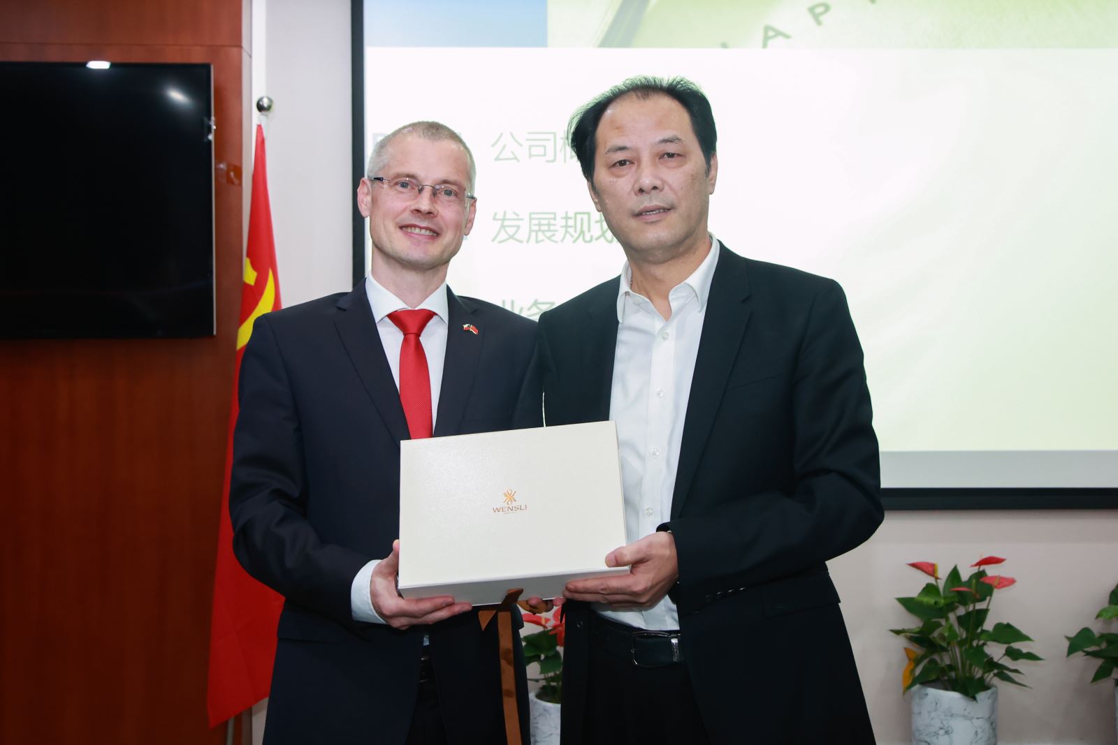 孫建華董事長(zhǎng)首先對(duì)佟福德大使一行的來(lái)訪表示熱烈歡迎,并介紹了國(guó)貿(mào)集團(tuán)和浙商資產(chǎn)的發(fā)展情況。他指出,國(guó)貿(mào)集團(tuán)與捷克企業(yè)的貿(mào)易合作由來(lái)已久,未來(lái)進(jìn)一步合作的空間廣泛。省政府對(duì)于浙商資產(chǎn)與捷信消金的合作高度重視,浙商資產(chǎn)將根據(jù)監(jiān)管要求,在依法、合規(guī)、專業(yè)且符合商業(yè)邏輯的原則下,全力以赴推進(jìn)與捷信消金的合作。